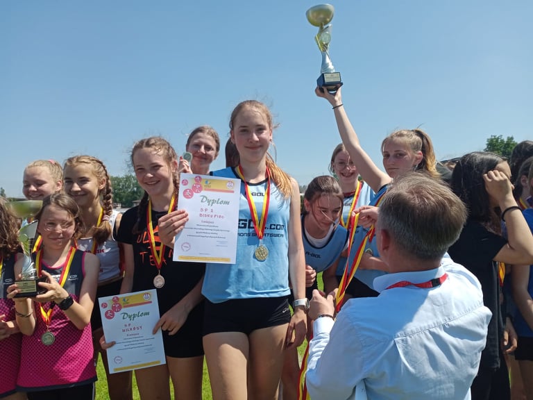 18 czerwca w Nidzicy odbyły się Drużynowe Mistrzostwa Województwa Szkół Podstawowych w Biegach Przełajowych. Na starcie biegu stanęła silna drużyna dziewcząt ze Szkoły Podstawowej nr 2 w Biskupcu. Po ciężkim boju w bardzo wysokiej temperaturze powietrza, dziewczyny wywalczyły I miejsce. Skład drużyny: Maja Niska, Kornelia Szulc, Julia Krzyżanek, Natalia Szeremiota, Oliwia Rebajn, Maria Garbino i Kornelia Dudziec. Trener: Andrzej Garbino. Młode sportsmenki już od trzech lat stawały na pudle mistrzostw województwa w biegach przełajowych i raz wywalczyły awans na Mistrzostwa Polski. Jednak z powodu trwającej pandemii Covid-19 zawody się nie odbyły. - Kończy się moja sportowa przygoda z dziewczętami, za tydzień opuszczają mury szkoły. Zaczęliśmy kilka lat temu: Mistrzostwem Województwa w piłce nożnej oraz awansem na Mistrzostwa Polski i dzisiaj skończyliśmy Mistrzostwem Województwa w przełajach. To była ogromna radość i przyjemność przeżywać z dziewczętami wspaniałe chwile radości i tryumfu w zawodach sportowych. Dziękuję dziewczęta za emocje, radość, wasze sukcesy. Życzę aby radość i duch zwycięstwa towarzyszył wam przez długie lata. – komentował trener dziewczyn Andrzej Garbino.